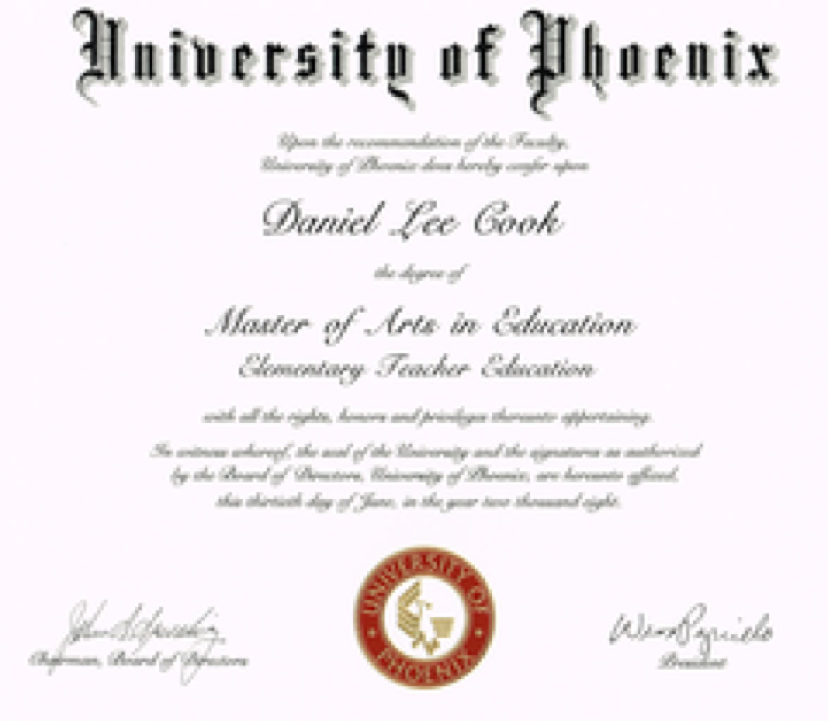 2008年6月 米国フェニックス大学(University of Phoenix)初等教育研究科